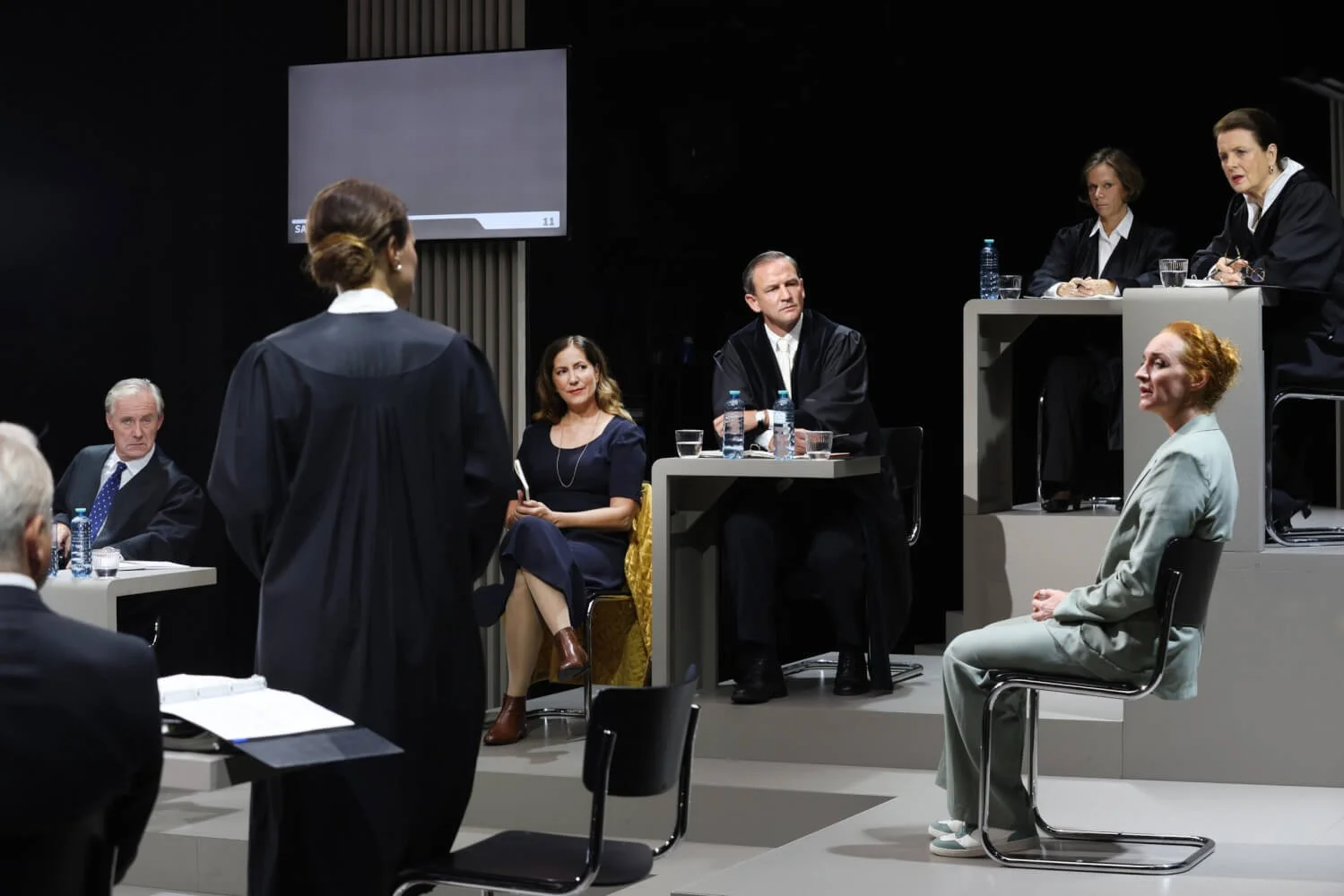 Nach den beiden Inszenierungen von Terror und Gott eröffneten die Kammerspiele der Josefstadt in Wien im September die Spielzeit mit der Uraufführung von Ferdinand von Schirachs jüngstem Gerichtsdrama “Sie sagt. Er sagt”. (Foto: Moritz Schell) (02.10.24)
